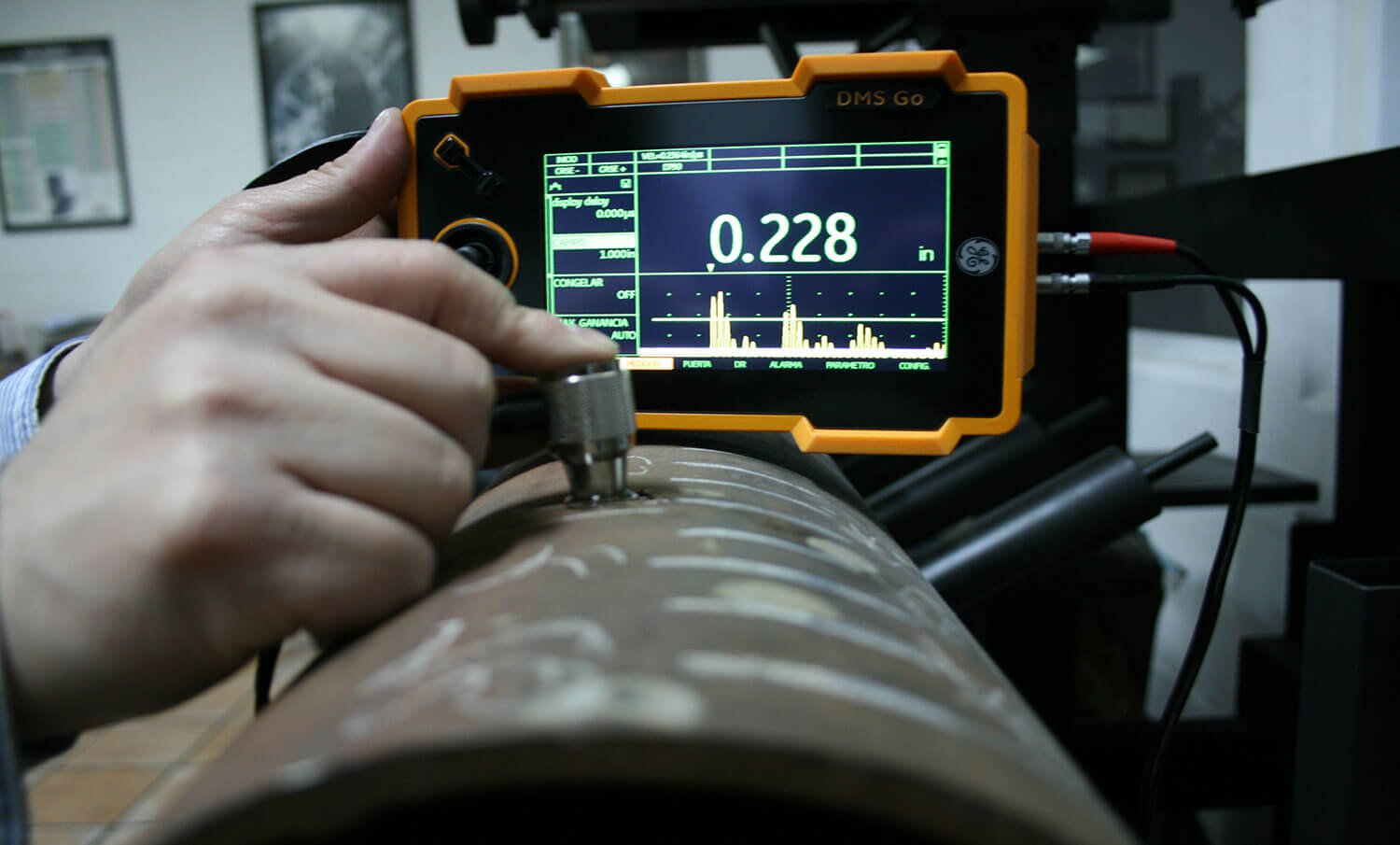 Inspección mediante tintas penetrantes y ultrasonido para detectar fallas sin afectar la integridad de los materiales.